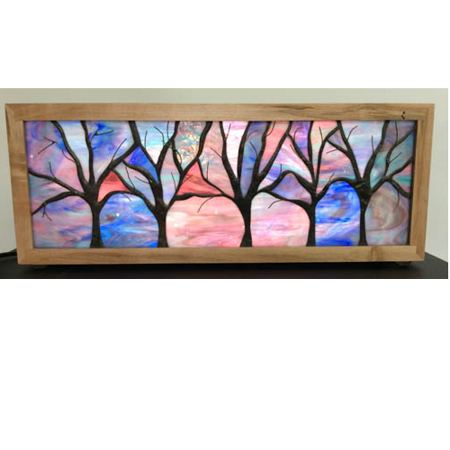 This stained glass tree light box is an original design by Carolyn Insler and was built in Visions Gallery by Carolyn.