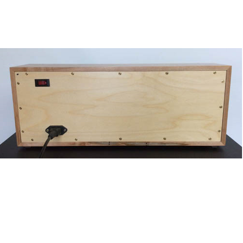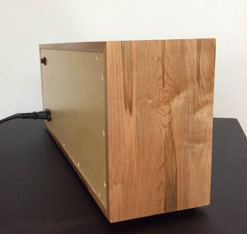 The maple box is made by artist Jim Roche of Chattanooga Tennessee who is a master of all things wood. LED strip lighting is used to illuminate the center tubular fixture.
